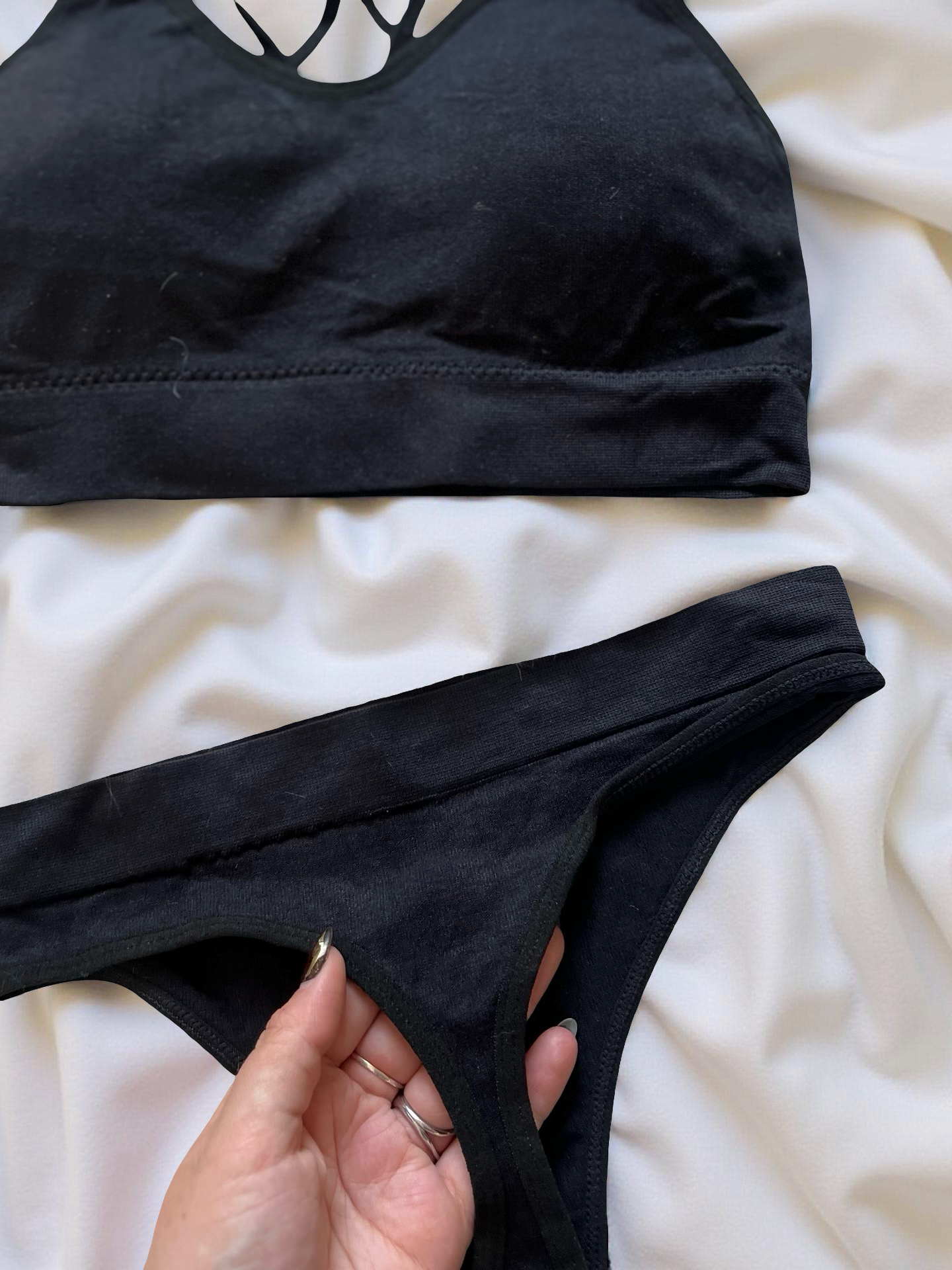 Conjunto de top y tanga en microfibra suave, pensado para brindar comodidad y libertad de movimiento.